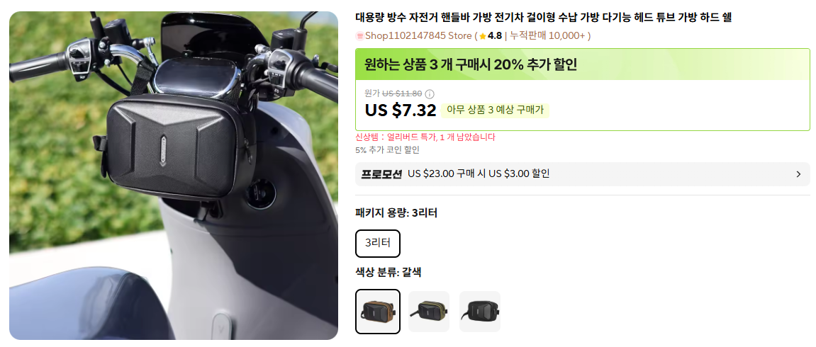 자전거 및 전기자전거 핸들바에 장착해 사용할 수 있는 대용량 수납 가방으로, 하드 쉘 구조와 방수 설계를 적용해 라이딩 중 소지품을 안정적으로 보관할 수 있는 제품입니다.